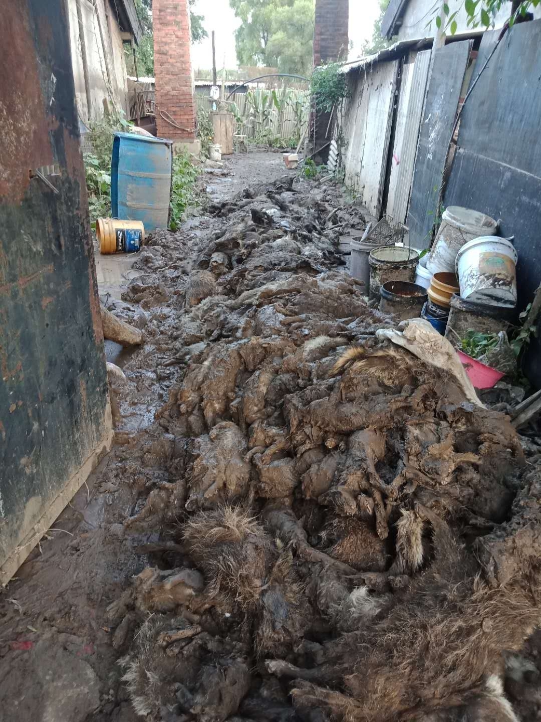 某区养殖户家因降雨导致淹死大量狐狸,我公司接到动监所电话,第一时间赶到现场进行收集并做无害化处理。