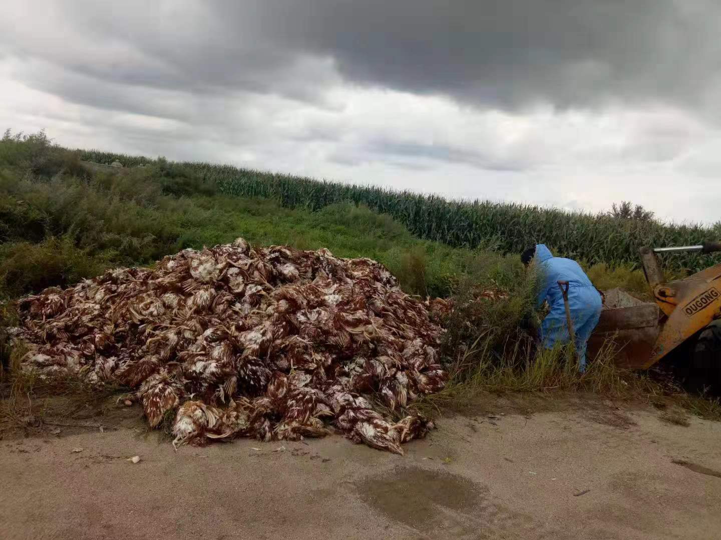 我公司接到农业农村局电话,对某区3500只不明原因死鸡进行收集并做无害化处理。